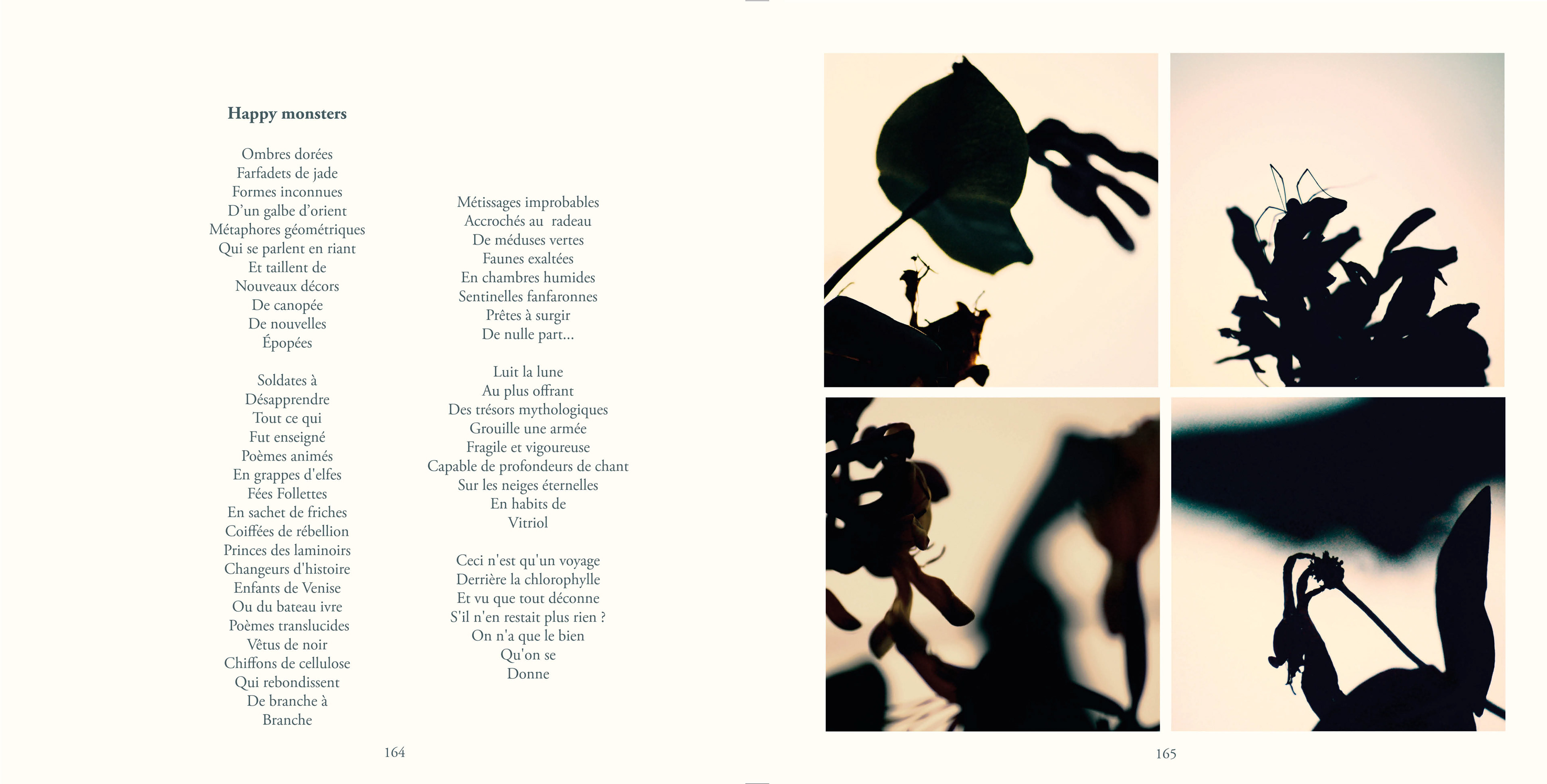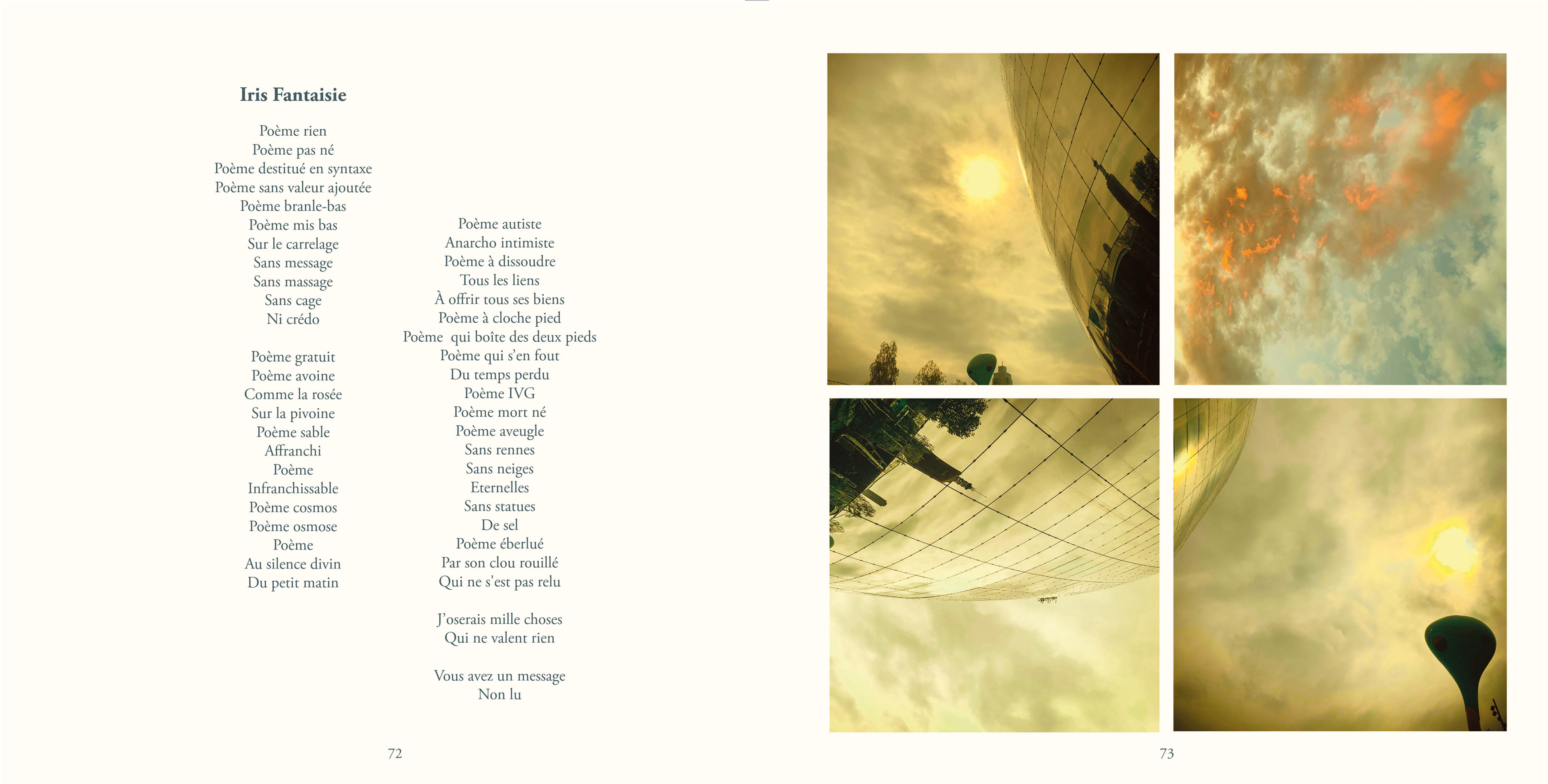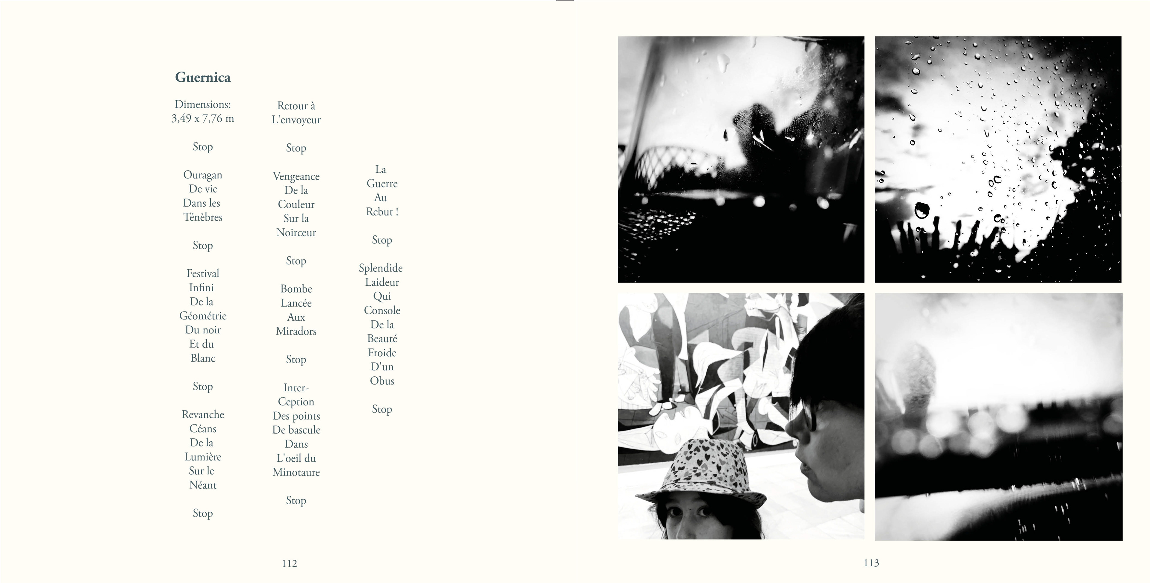 Le recueil contient 87 poèmes, un texte en prose, 83 quadriptyques et 335 photos