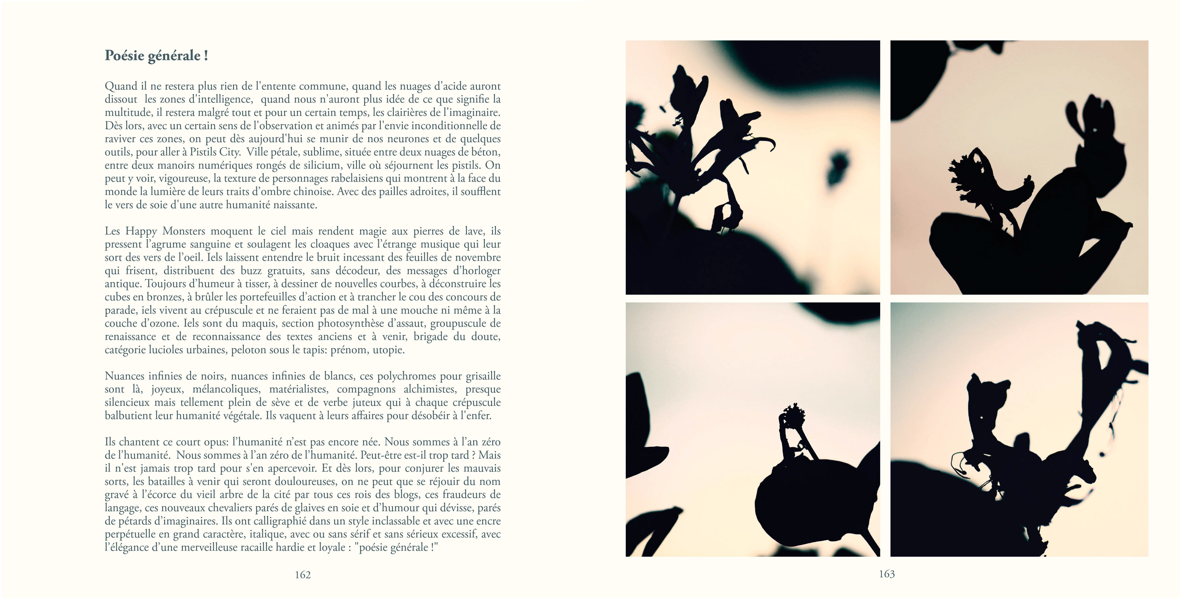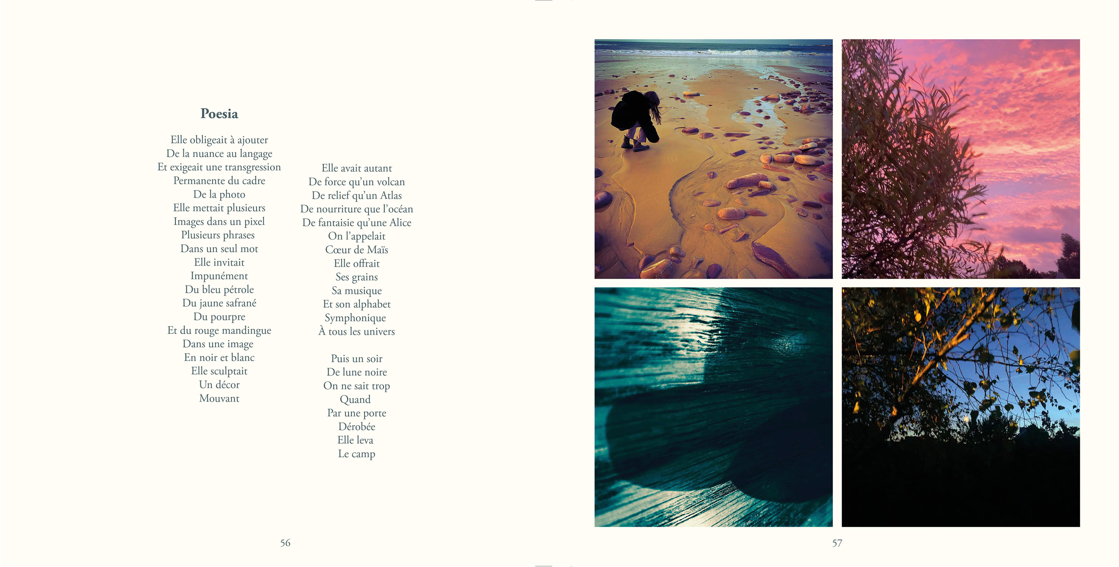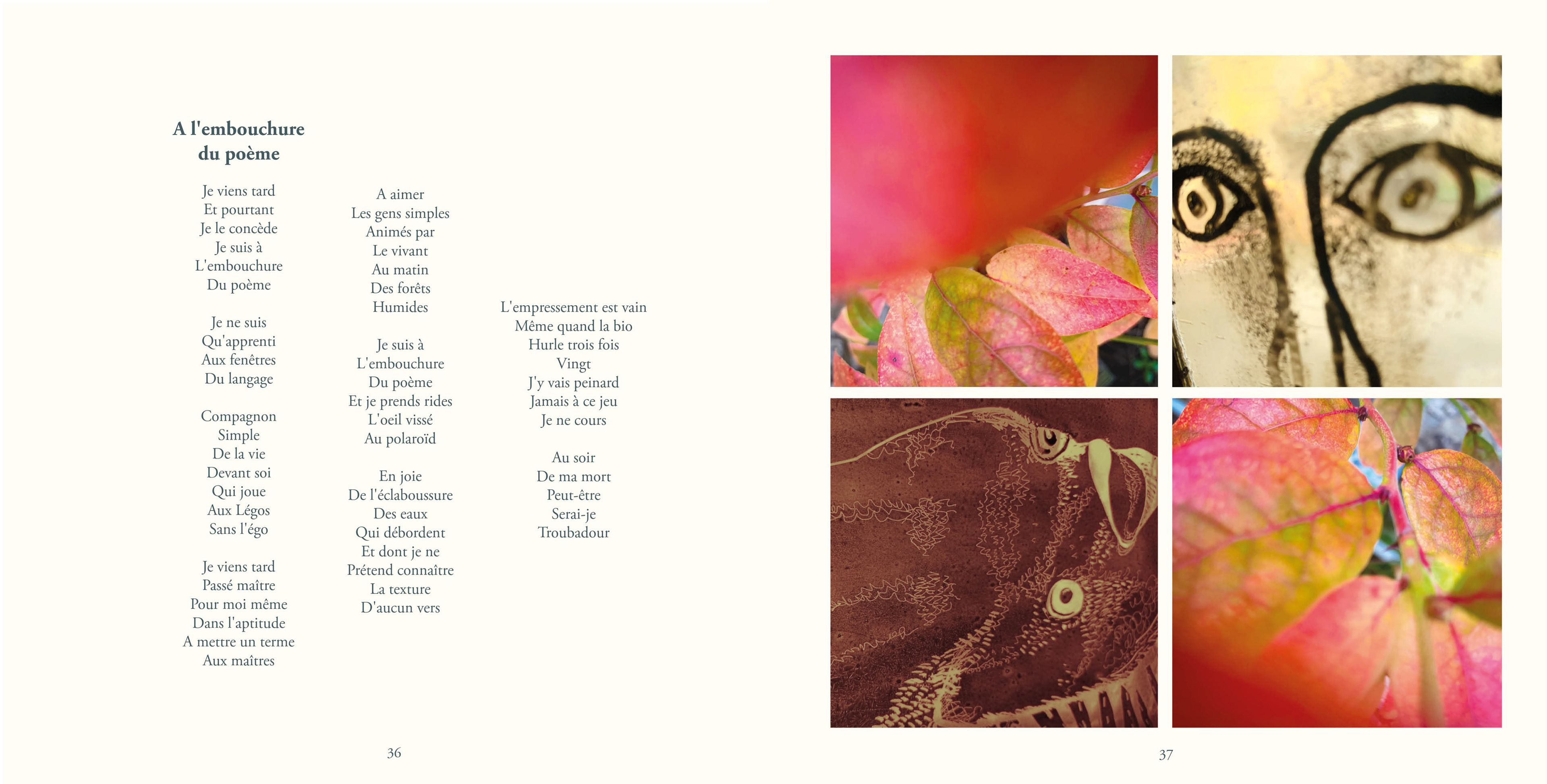 Le recueil contient 87 poèmes, un texte en prose, 83 quadriptyques et 335 photos